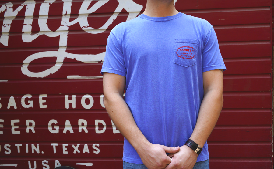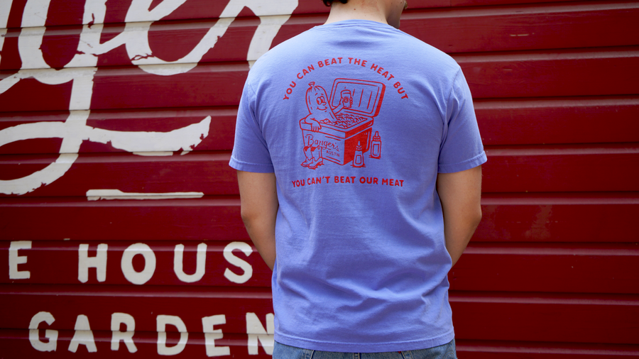 "BEAT THE HEAT TEE" BLUE & RED | COMFORT WASH POCKET TEE
